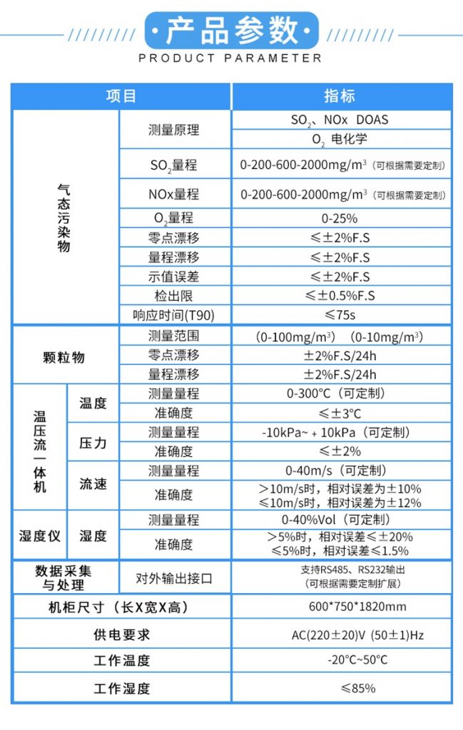精訊暢通的CEMS煙氣排放連續監測系統由顆粒物監測單元和氣態污染物SO和NOx監測單元、煙氣參數監測單元、數據采集與處理單元組成。煙氣分析儀能夠測量煙氣中顆粒物濃度、氣態污染物SO2和NOx濃度、煙氣參數,同時計算煙氣中污染物排放速率和排放量。CEMS煙氣在線監測系統可以顯示和記錄各種數據和參數,形成相關圖表,并通過數據、圖文等方式傳輸至相關管理部門。