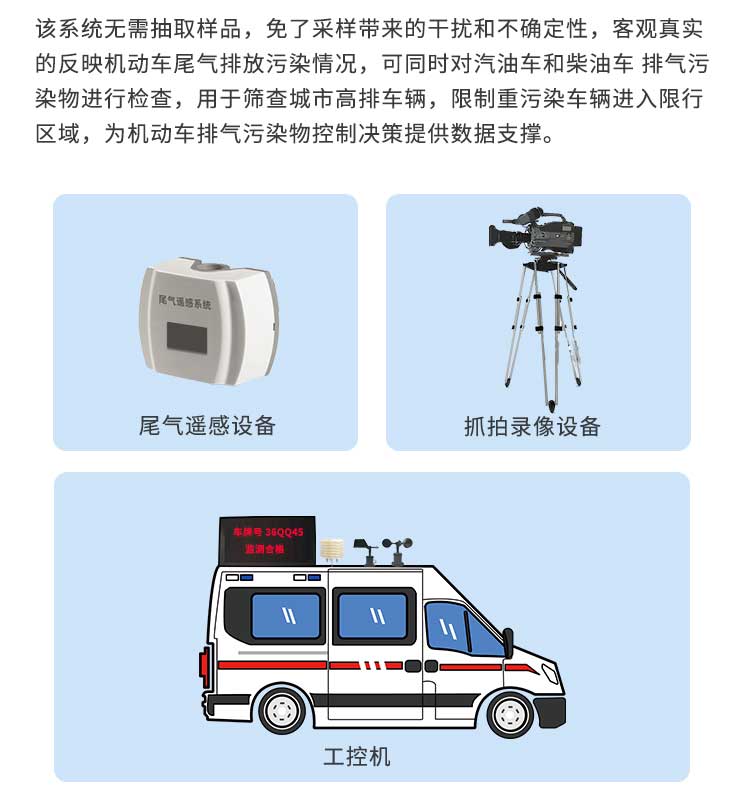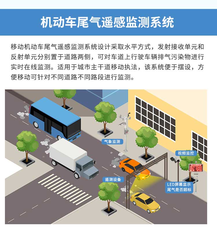 機動車尾氣遙感監測系統是可以實時監測行駛中機動車尾氣排放數據的空氣質量檢測系統。機動車尾氣遙感監測系統通過垂直式、水平式、移動式遙感監測設備來監測尾氣排放。采用計算機網絡和布點選址技術,對各遙感監測設備進行科學化組網,確保監測數據的安全、有效傳輸。