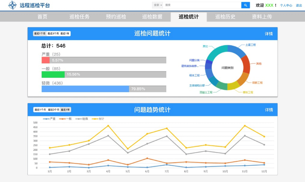 巡檢數(shù)據(jù):巡檢任務(wù)的統(tǒng)計(jì)、巡檢問(wèn)題的統(tǒng)計(jì)、問(wèn)題趨勢(shì)的統(tǒng)計(jì)。