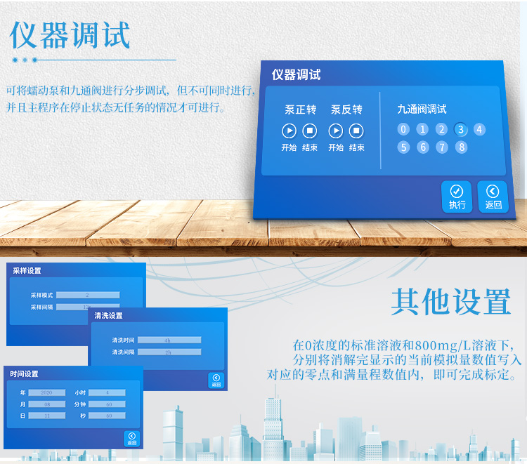 9項水質(zhì)檢測系統(tǒng)適用于大、中、小型水廠及農(nóng)村用水的濁度余氯、總氯化合氯、二氧化氯色度、嗅和味、細菌、PH、COD錳的檢測,以便使檢測的水達到規(guī)定的水質(zhì)標準。